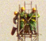 作業員が鉄塔に登って台を撤去する様子 最後の鉄塔の撤去風景