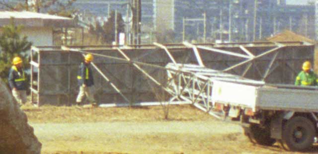 地上に降ろされた鉄塔上の台の姿 鉄塔の上についていた台