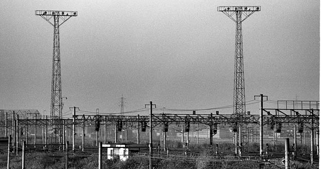 武蔵野操車場に立つ鉄塔の様子 昭和59年ごろの武蔵野操車場の風景