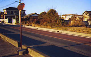 写真説明:学校入口バス停(三郷行き方向)